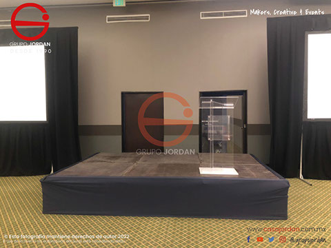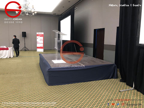 Hemos instalado estrados para conferencias, foros, lanzamiento de productos, escenario para grupos musicales o conferencistas.