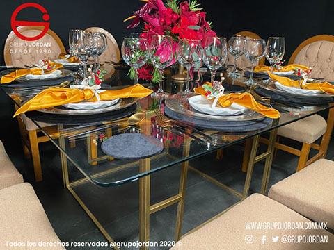 No encontrarás mejores mesas de cristal en el mercado, un cristal grueso y delicadamente cortado para la comodidad y belleza de tu montaje.